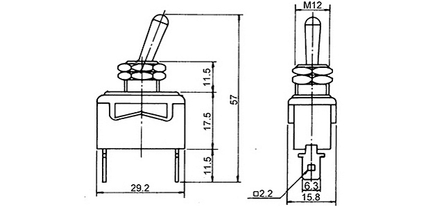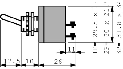 type: Tuimelschakelaar metal toggle switch with 17.5 mm lever