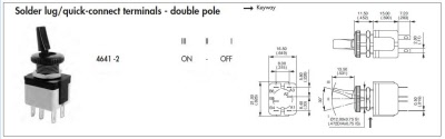 Tuimelschakelaar DPDT 2 x wissel 250Vac - 15A Apem | 646H2