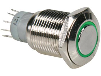 Ronde metalen drukknop SPDT off-(on) groene ring | R1600G