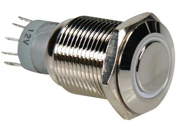 Ronde metalen drukknop SPDT off-(on) blauwe ring | R1600B