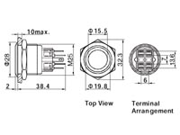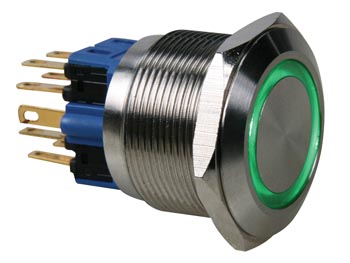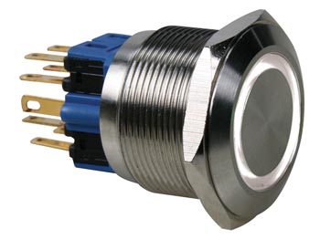 Drukknop plat roestvrij staal SPST off-(on) rode ring | R2000R