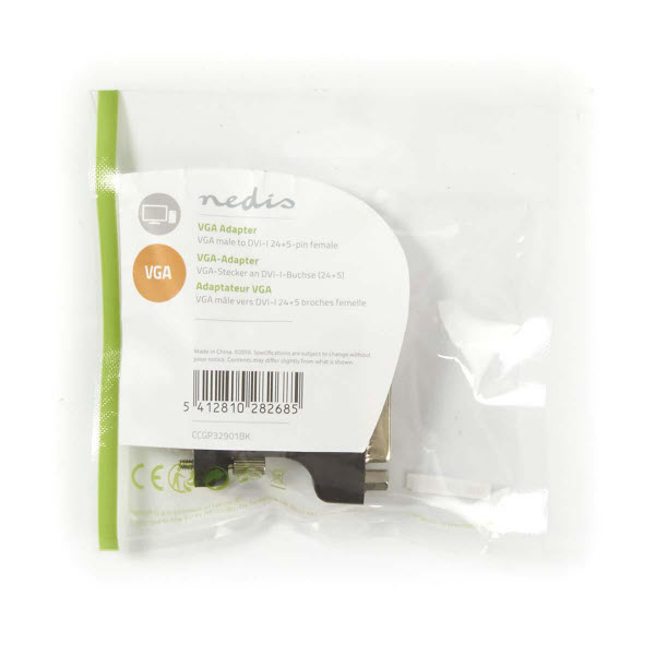 Converteer de VGA-poort van je PC of notebook in een DVI-I verbinding met deze adapter. Je kunt vervolgens een monitor, een plasma- of LCD-TV of een projector aansluiten.