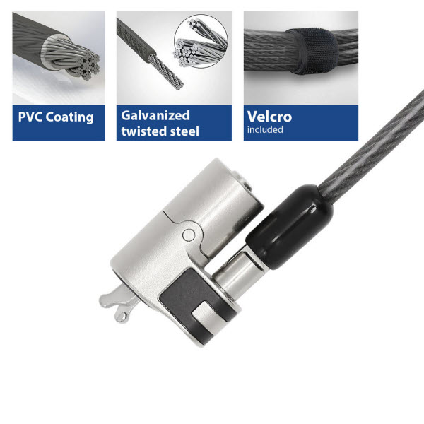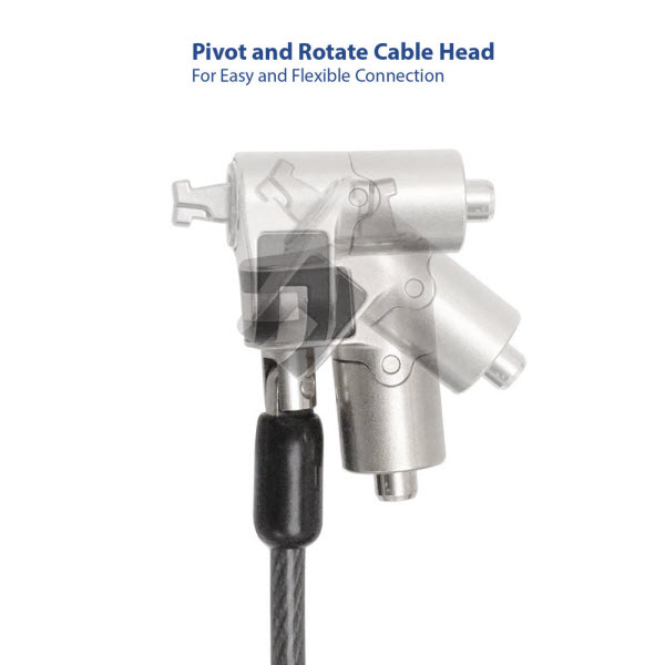 Wanneer jouw laptop een uitsparing heeft voor een Wedge-slot (3,2 x 4,5mm), kun je het AC9035 Laptopslot gebruiken om diefstal te voorkomen. De kabel is gemaakt van snijbestendig staal. Het slothoofd kan roteren en knikken voor een flexibelere toepassing.