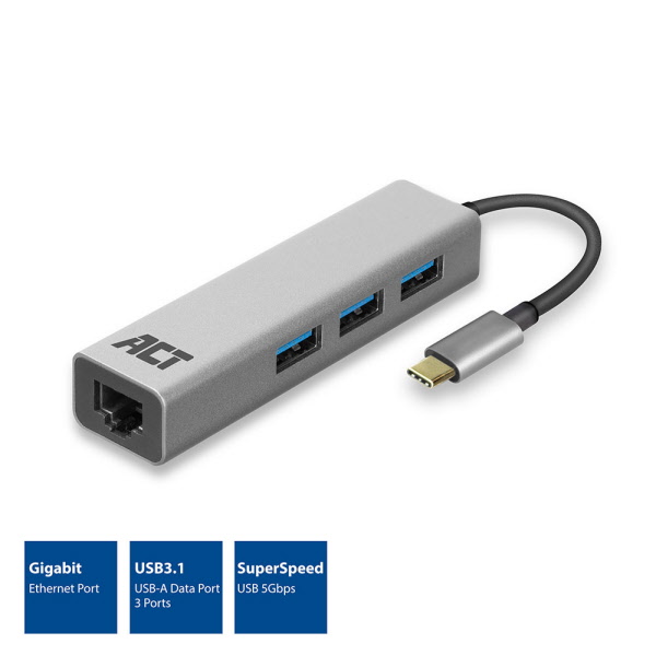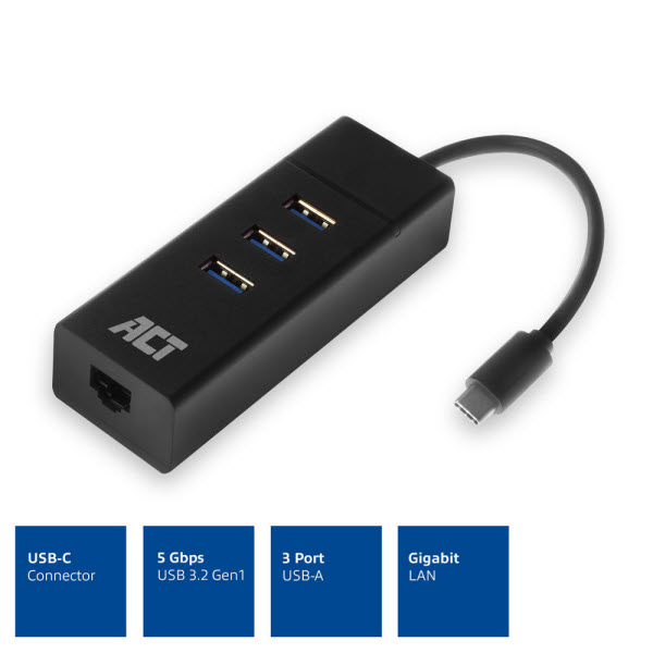 De ACT AC7080 USB-C 3.2 Gen1 naar RJ45 Gigabit Ethernetadapter is de oplossing wanneer de netwerkpoort van het apparaat (bijv. een laptop) kapot is of wanneer deze geen netwerkpoort heeft. De laptop wordt zo geüpgraded met een fysieke gigabit netwerkverbinding. De netwerkadapter is direct klaar voor gebruik en kan worden gebruikt op iedere USB-C poort. De AC7080 wordt gevoed via USB.