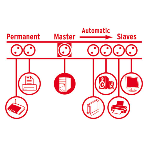 - Meer gemak met 1 master stopcontact en 5 slave stopcontacten