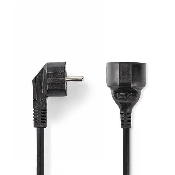 2.00m Stroomkabel Schuko recht male haaks - Schuko female recht | CEGL10230BK20