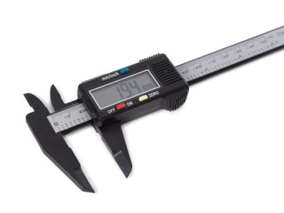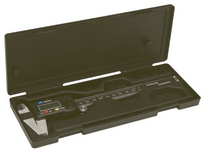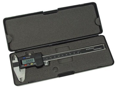Zeer nauwkeurige schuifmaat. Meet tot 150mm (6") met een resolutie van 0.01mm (0.0005"). Uitlezing in mm of inches op een LCD met 5 digits. Geleverd met batterij.