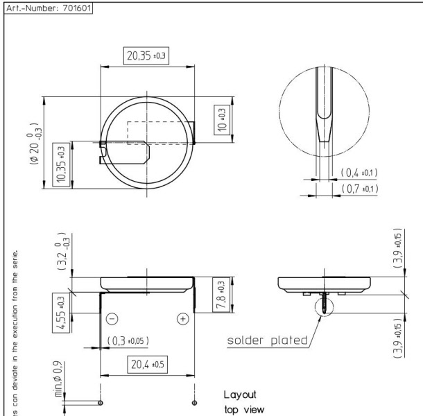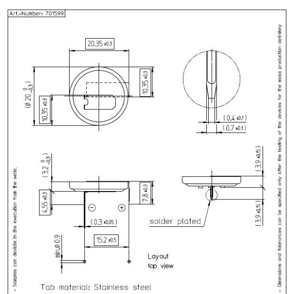Lithium batterij 3V PCB horizontale soldeerlippen p=20 | CR2032MFRFH1