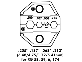 • Geschikt voor onderstaande kabels:RG58-, RG59-, RG62-, RG140-, RG141-, RG142-, RG210-kabels