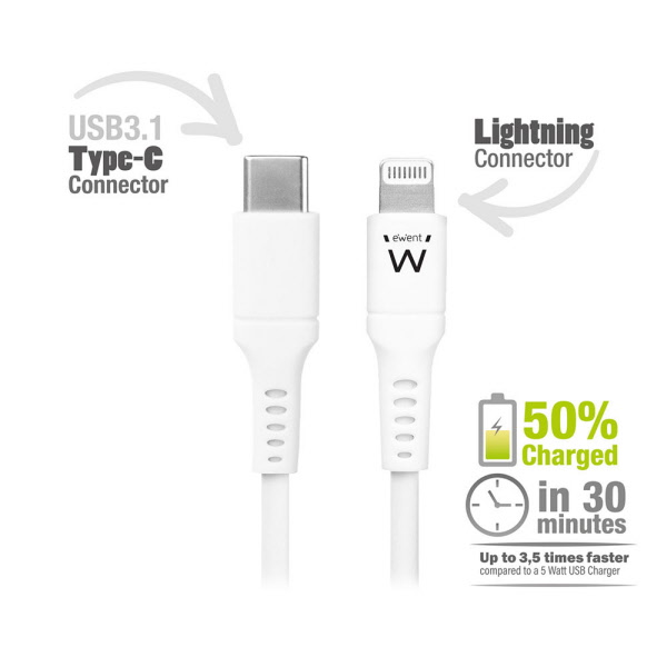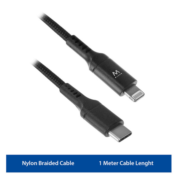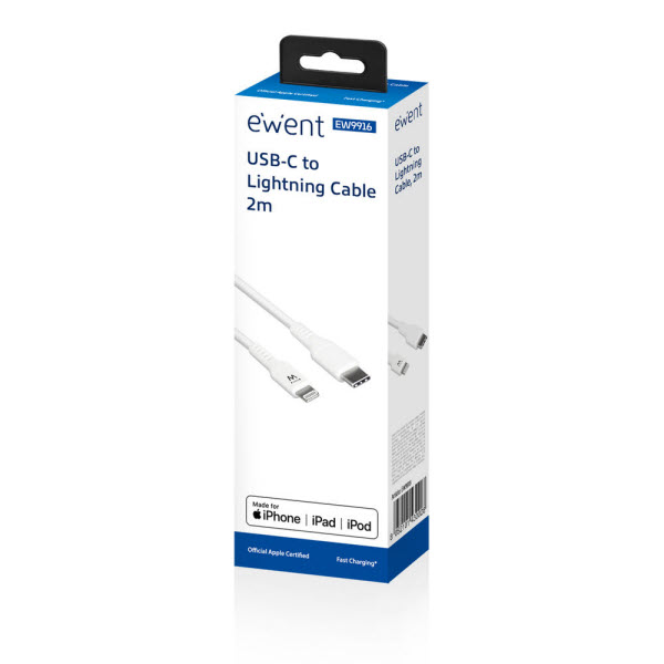 Gebruik de USB-C naar Lightning-kabel om Apple iOS-apparaten op te laden tot maximaal 20W. De kabel kan ook worden gebruikt voor het synchroniseren of het overzetten van data van en naar een iPhone of iPad. De AC3095 is MFI gecertificeerd en is te gebruiken met een USB-C thuis- en autolader. De nylon gevlochten omhulling houdt de kabel knoopvrij.