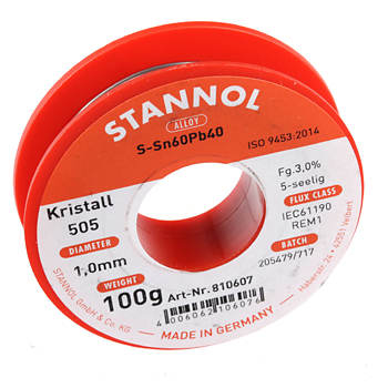 De soldeerdraad Kristall 505 is gebaseerd op een laag-halogeen geactiveerde "No-Clean" flux. Het is ontwikkeld voor hoge eisen voor conventioneel solderen en voor het solderen van SMD's in industriële productie en voor reparatie en resoldering.