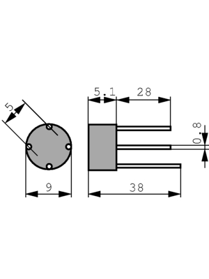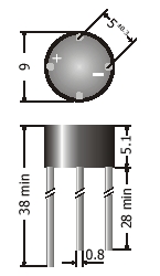 afmeting: rond 9mm x 5mm