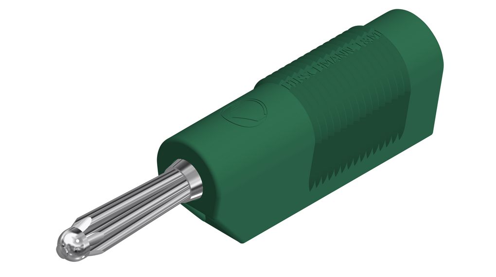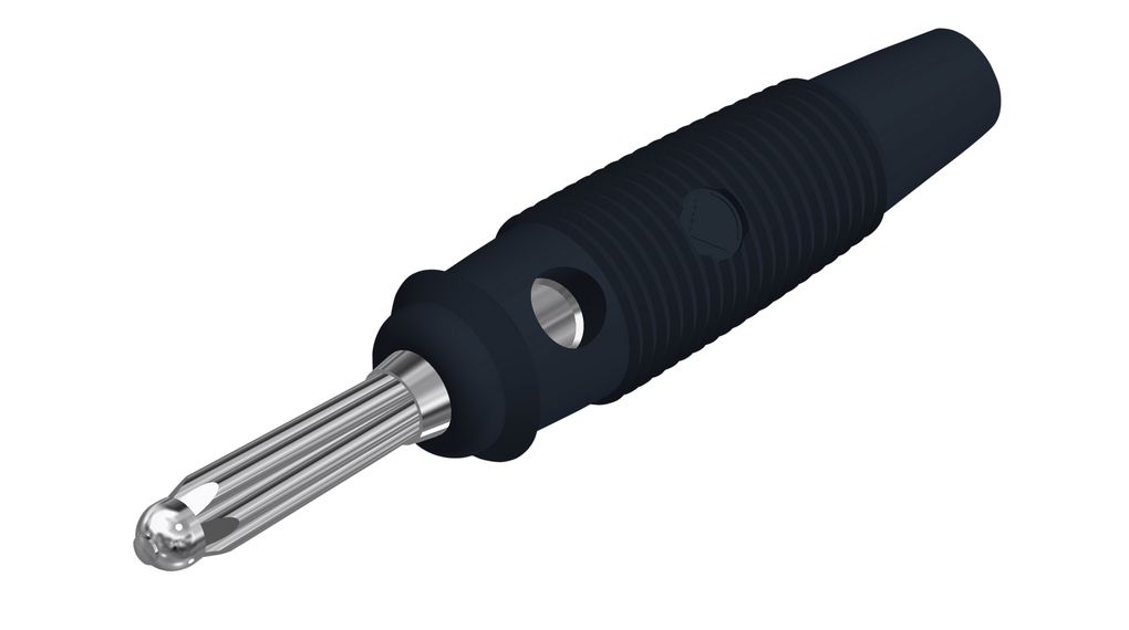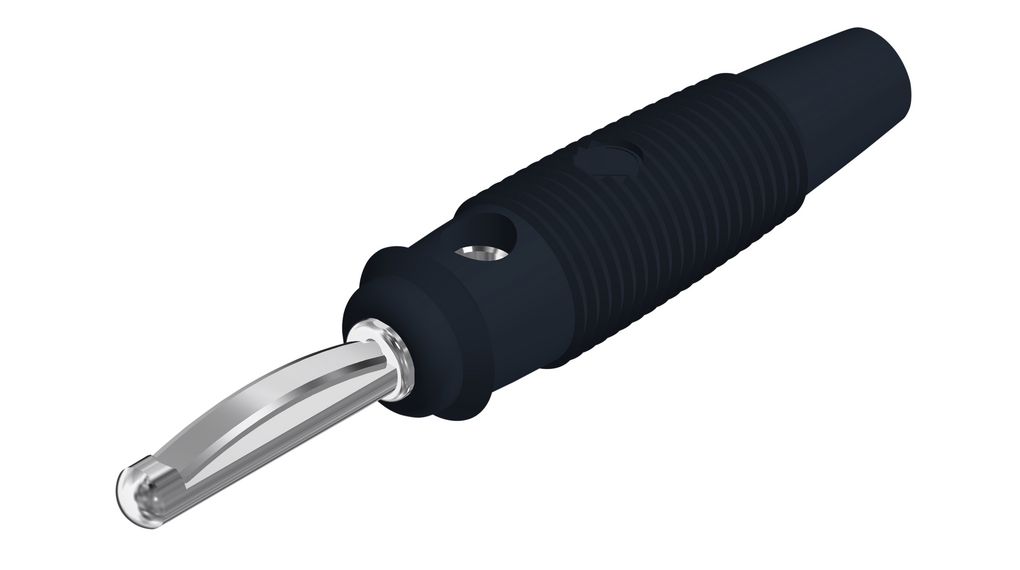Banaanstekker 4 mm. Contactvlak voorzien van meervoudig veersysteem voor optimaal contact. Stekker kan doorgelust worden met meerdere 4 mm stekkers. Schroefbevestiging voor kabels met maximaal 2,5 mm². Vernikkeld koperen contactvlak. Geschikt voor 60V/DC-30A.