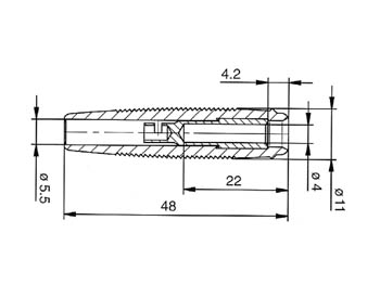 Slagvaste soepele geïsoleerde contra banaanstekker voor banaanstekkers met Ø 4mm en soldeeraansluiting voor kabels met een max. Ø van 2.5mm². Ingangsbus in vernikkeld messing.