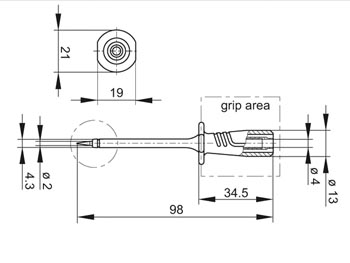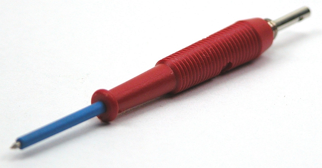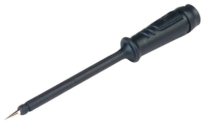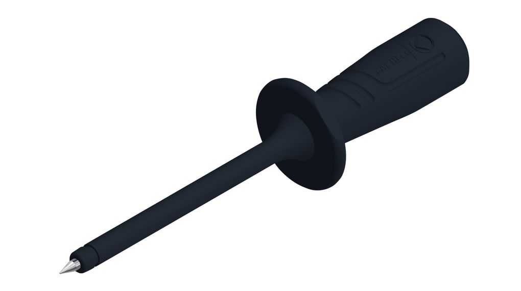 Meetpen met elastische en slagvaste isolatiehuls voor de schacht. De fijne meetpen is slagvast en is uitgevoerd in verend staal. U verkrijgt dus een constante druk zonder dat de meetpen wegglijdt, zelfs niet wanneer u werkt met zeer kleine meetpunten. Kan worden aangesloten op standaard 4mm laboratoriumuitrusting en veiligheidsuitrusting voor labo.