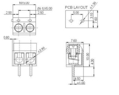 2-polig Printkroonsteen 5.0mm rijgbaar | DG301250