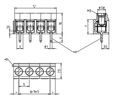 3-polig Printkroonsteen 7.5mm rijgbaar | DG 129-7.5-3