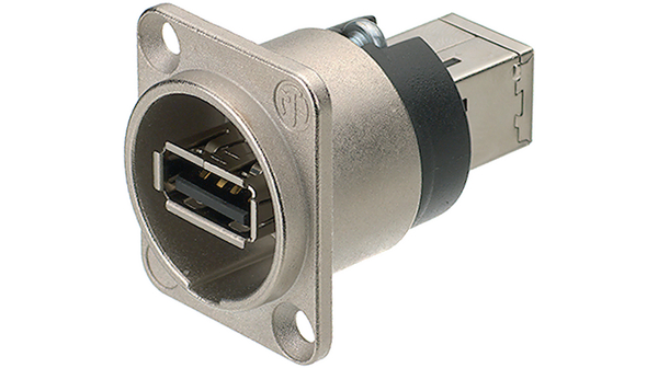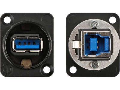 De NAUSB3-W is een omkeerbare USB 3.0-doorvoeradapter. De gestandaardiseerde D-behuizing van de adapter past in gewone patchpanels en biedt een extra bescherming voor de connector.