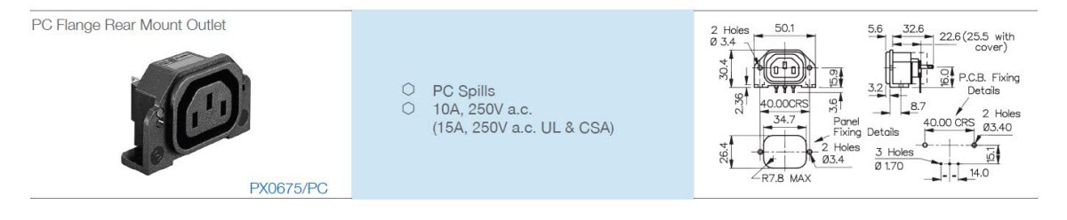 Net-entree C14 male PCB montage | PX0580PC7LC