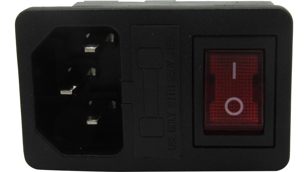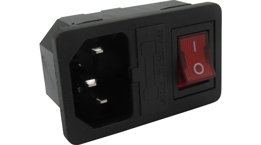 Type : Net-entree male met zekeringhouder + rode schakelaar | Inlet Combi C14