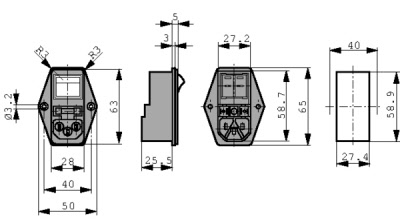 type: Net-entree C14 Male, bevestigingspunten horizontaal